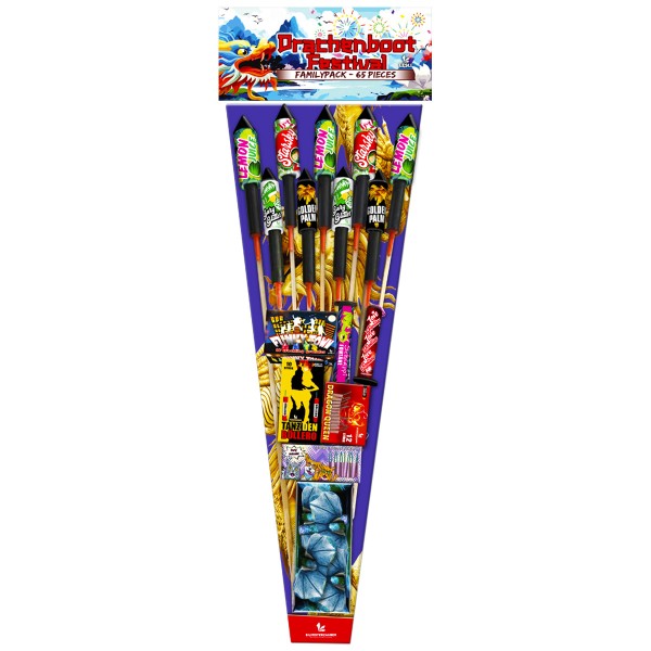 9 große Raketen formen die Basis dieses hochwertigen Familiensortiments. Insgesammt 65 Teile!