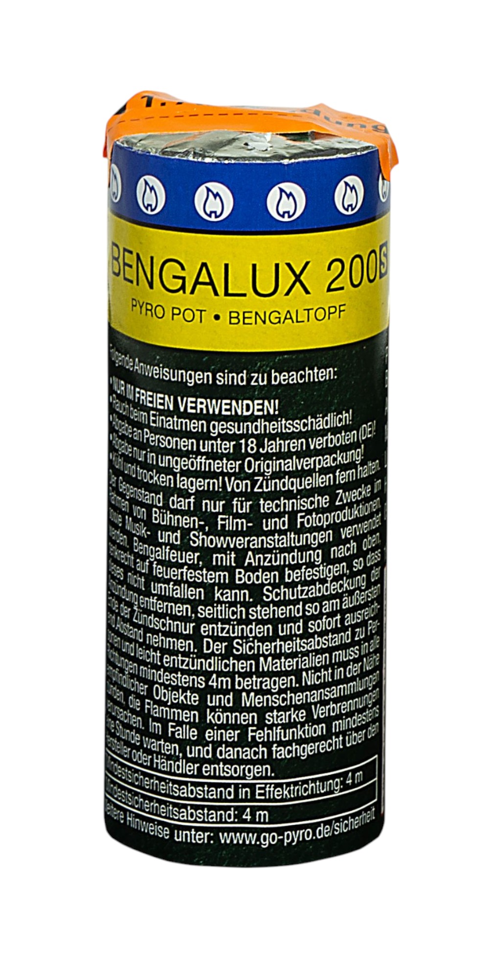 Beliebter Bengalux in der Effektvariante mit starker Rauchentwicklung. Perfekt geeignet zur Illumination. Der Rauch sorgt dabei für einen zusätzlich positiven Effekt. Wegen des extrem starken Lichtanteils und der großen Menge an Rauch nennen wir es auch gern liebevoll unser kleines Breslauer Feuer!