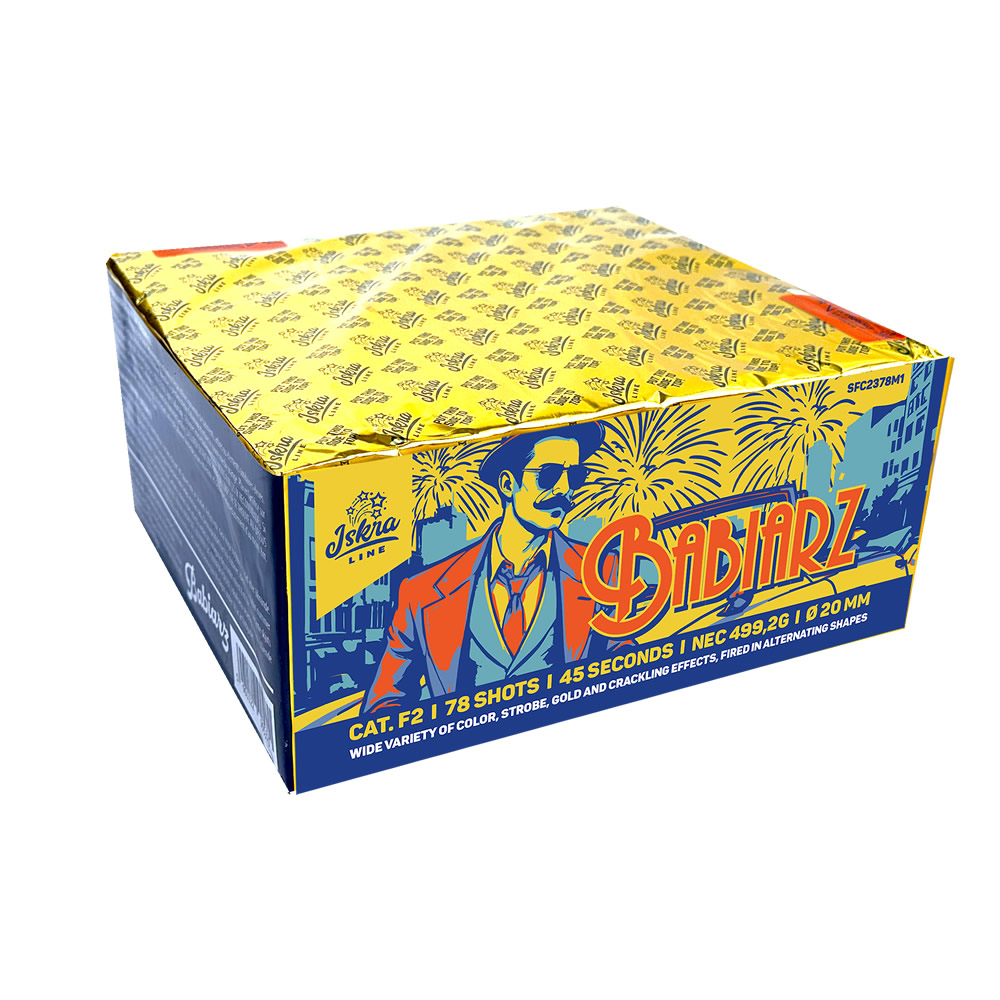 78 Shot Fireworks Cake with Wide Variety of Color, Strobe, Gold and Crackling Effects, Fired in Alternating Shapes