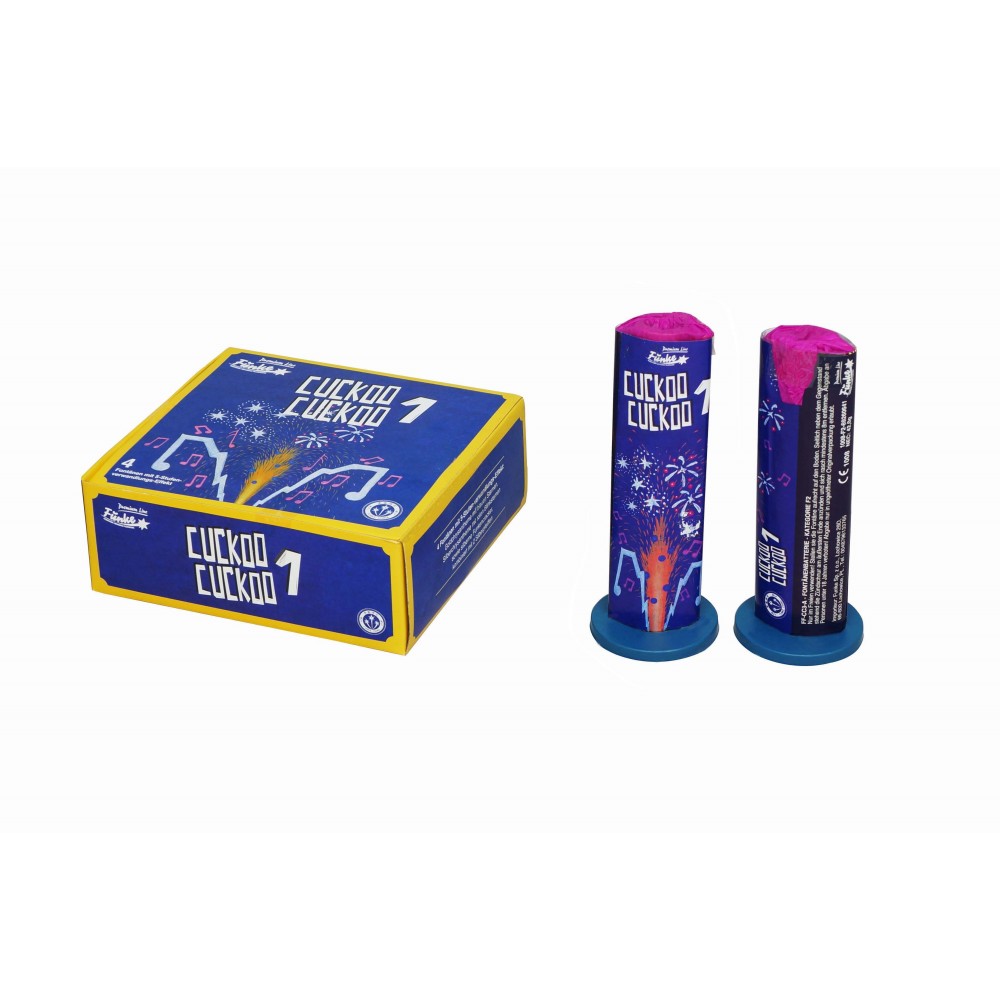 4 klassische Cuckoo-Cuckoo-Fontänen mit 5-Stufen-Verwandlungs-Effekt: Goldchrysantheme mit blauen Sternen, Silberchrysantheme mit roten Blinksternen sowie silberne Funkencracker, kombiniert mit 2 Silberpfeiffen.