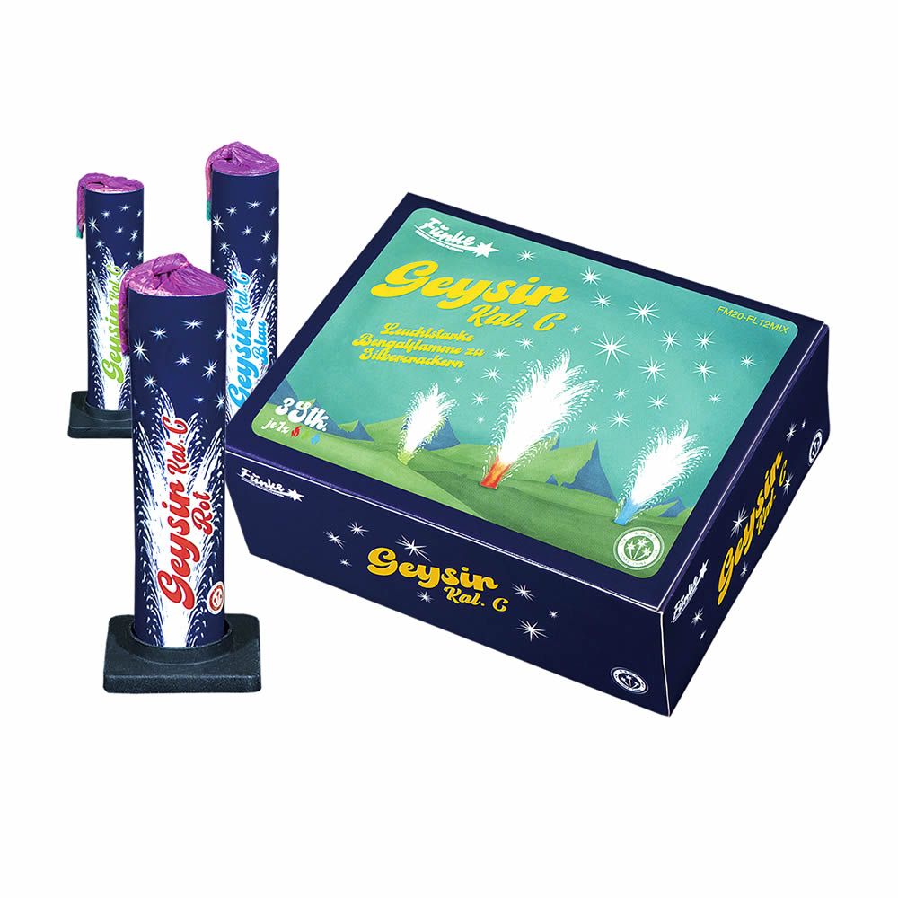 Packung aus 3 Fontänen mit leuchtstarker farbiger Flamme und abschließendem Auswurf von Silbercrackern. Pro Packung ist jeweils eine Fontäne in grün, rot und blau enthalten.